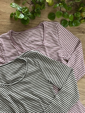 Stribet t-shirt i uld/silke til kvinder